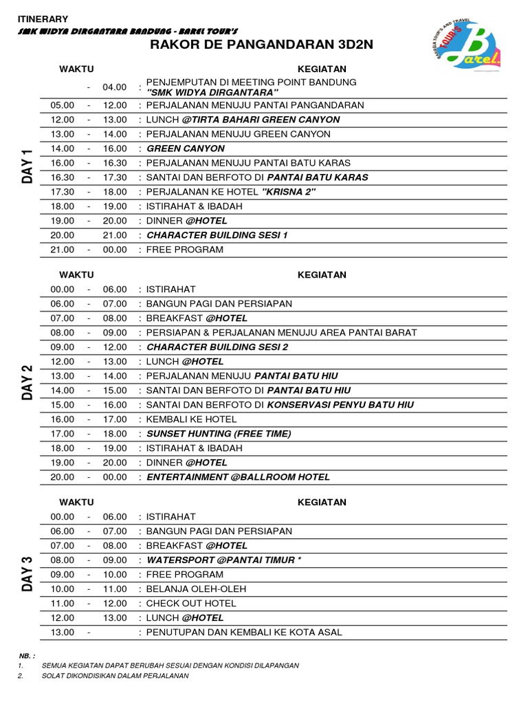 Susun perjalanan bisnis Anda dengan templat ini yang berisi rencana perjalanan di halaman pertama dan halaman tambahan untuk setiap hari selama perjalanan dengan detail jadwal dan. 3 HARI 2 MALAM. Itinerary Tour Bali Contoh Jadwal Perjalanan Tujuan Wisata Liburan di Bali 1 Hari Full One Day Setengah Hari 2 Hari 3 5 4 Malam Temukan Contoh Itinerary atau Jadwal Tour Bali terbaik sebagai referesnsi rencana perjalanan anda di halaman ini.